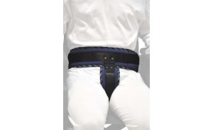 Un maintien pelvien au fauteuil combiné à une ceinture de confort.