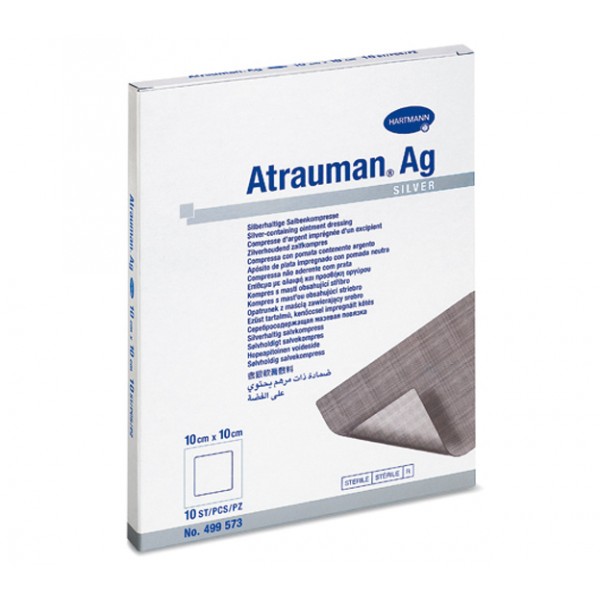 Pansements interfaces à l'argent métallique, avec imprégnation lipidique à base de triglycérides. Atrauman Ag dispose d'une action bactéricide sur la plupart de germes, y compris les germes multi-résistants. Au contact des exsudats, Atrauman Ag libère des ions Ag+ qui ont une action bactéricide efficace tout en respectant la viabilité des cellules intervenant dans le processus de cicatrisation. Atrauman Ag est composé d'un voile de polyamide très souple et conformable qui lui permet de s'adapte à la plupart des plaies et leur localisation. Il peut s'utiliser en combinaison avec la plupart des pansements secondaires absorbants. Son imprégnation à base de triglycérides, exipient gras hydrophile, permet la protection des berges de la plaie et favorise des retraits atraumatiques.