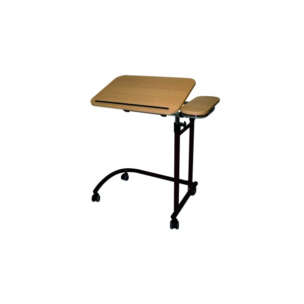 Grand plateau réglable en hauteur, en inclinaison et coulissement latéral Plateau latéral Réglage de la hauteur manuel Grand choix de couleurs Baguette de rétention Piétement en "U"